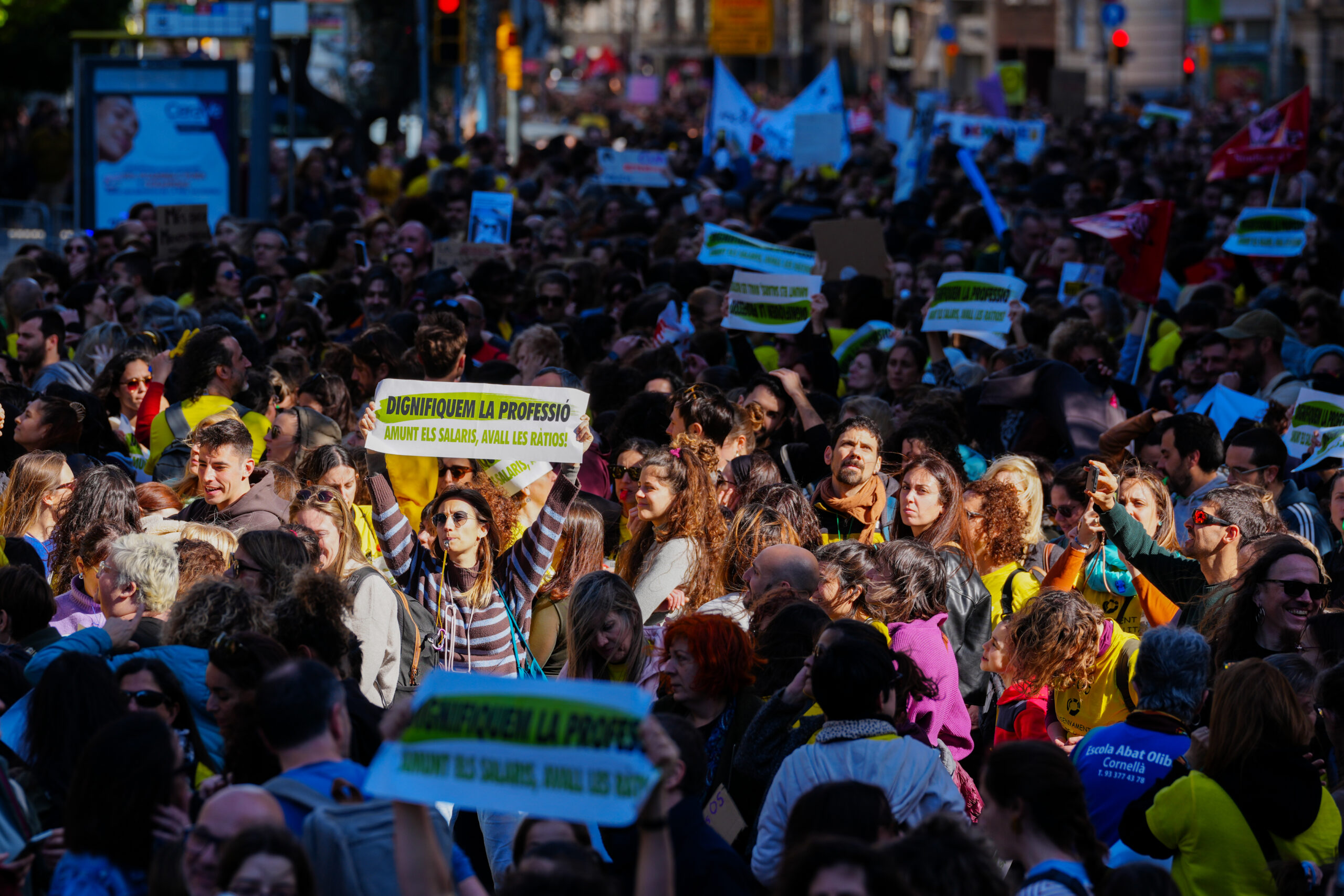 ACN Barcelona – Els sindicats d’educació veuen “absolutament insuficient” i, fins i tot, “ofensiva” la proposta d’incrementar en uns 1.500 euros el complement específic dels docents en quatre anys que la conselleria ha plantejat. Així ho han valorat els representants dels sindicats després d’una reunió amb responsables del Departament d’Educació aquest dijous. Segons els sindicats, el departament els hauria reconegut que la proposta és “insuficient” i els ha convocat a tres meses de negociació la setmana que ve per proposar-los millores. Les organitzacions mantenen la voluntat de fer una setmana de vagues al març i reivindiquen que la “pressió” als carrers, amb una manifestació multitudinària la setmana passada, ha portat el departament a negociar.