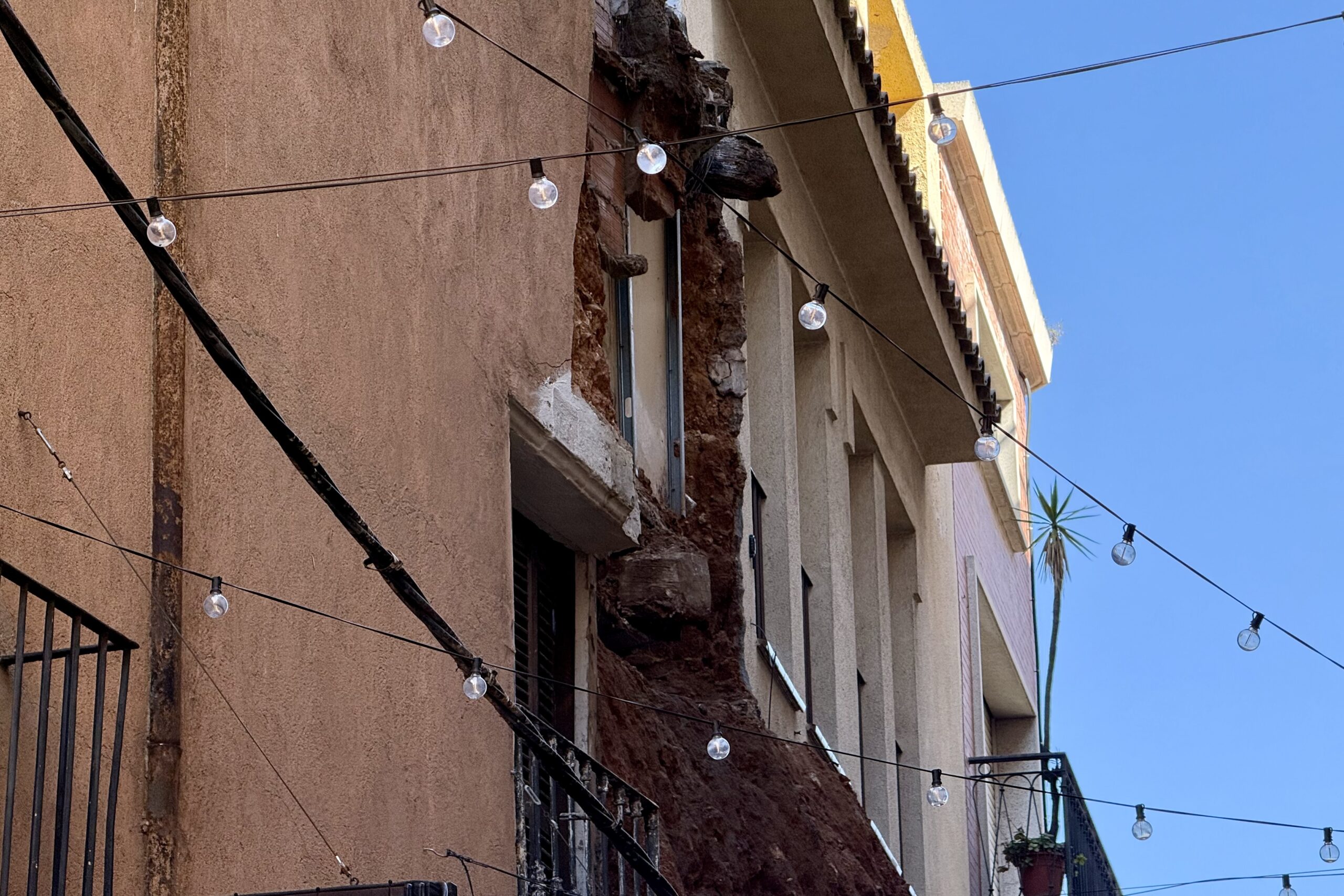 “Vaig sentir un soroll sord, vaig veure que el cable de la llum queia, en un principi vaig pensar que era el balcó de sobre meu, i no, vam sortir i vam veure tota la situació”, ha explicat. El tancament del carrer l’afecta per partida doble, donat que no només hi té el negoci, també la casa: “Cada cop que entro o surto he d’avisar els agents de policia que hi ha”, assenyala.