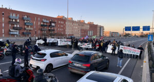Docents en vaga tallen la C-31 a la frontera entre Badalona...